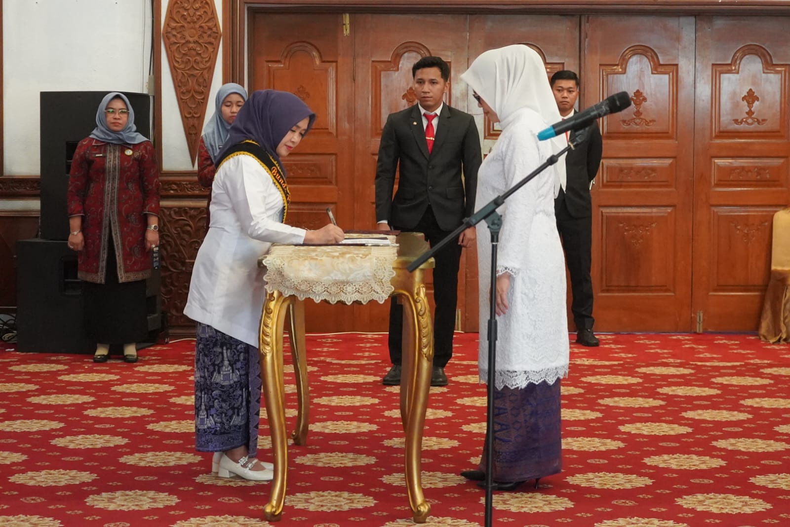 Jambi – Ketua Tim Penggerak Pemberdayaan dan Kesejahteraan Keluarga (TP-PKK) Provinsi Jambi Hj. Hesnidar Haris mengemukakan, setelah lama ditunggu-tunggu akhirnya dilantik juga. Semoga dengan pelantikan ini, Ketua TP-PKK dapat menjalankan tugasnya dengan komitmen yang kuat, baik dan efektif dalam meningkatkan kesejahteraan keluarga dan masyarakat. Hal tersebut dikemukakannya saat melantik Ketua TP-PKK dan TP-Posyandu Bungo Hj. Elza Kurniawati Dedy dan dilanjutkan dengan pelantikan Ketua Dekranasda dan Bunda PAUD Kabupaten Bungo, bertempat di Auditorium Rumah Dinas Gubernur Jambi, Senin (26/05/2025) pagi.