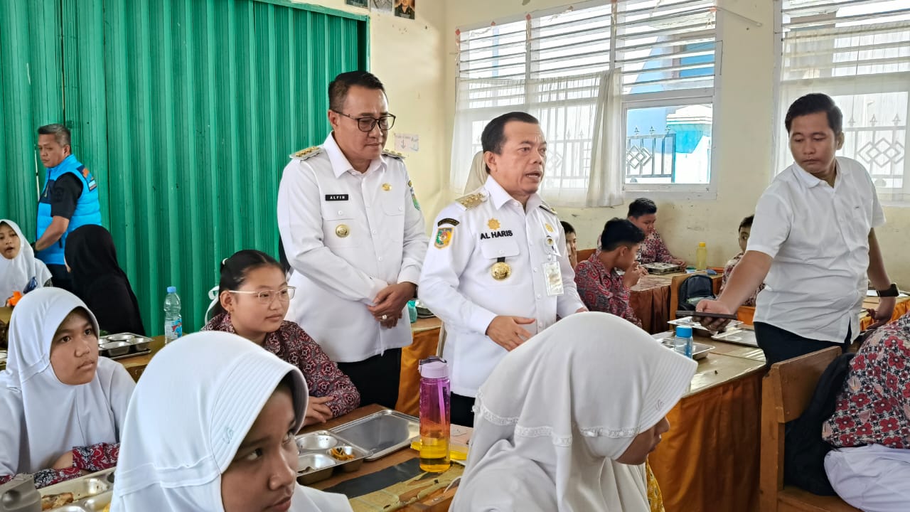 Sungaipenuh – Gubernur Jambi Al Haris didampaingi Wali Kota Sungai Penuh Alfin meninjau Satuan Pelayanan Pemenuhan Gizi (SPPG) di Tanah Kampung dan Makan Bergizi Gratis (MBG) di SMPN 8 Kota Sungai Penuh, Rabu (23/07/2025).