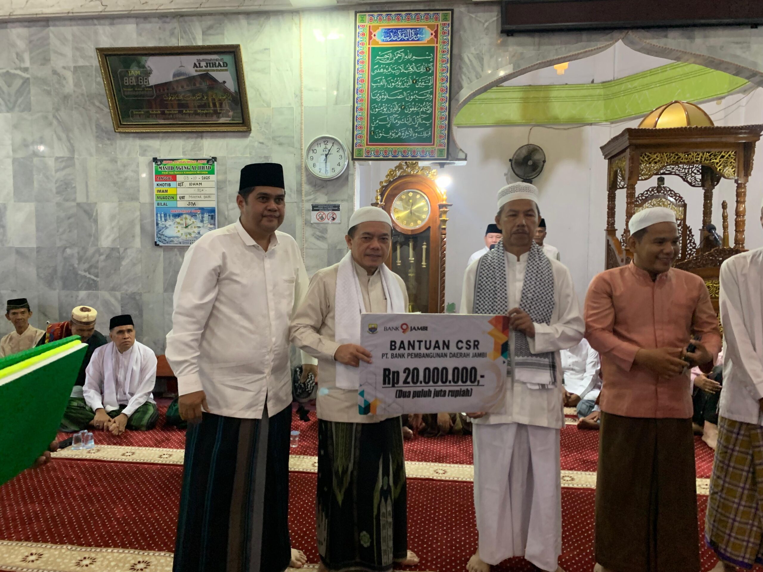 Selain memberikan bantuan hibah masjid dan Ponpes, Gubernur Al Haris didampaingi Zulfikar, SE., MM direktur operasional Bank Jambi juga menyerahkan CSR Bank Jambi.