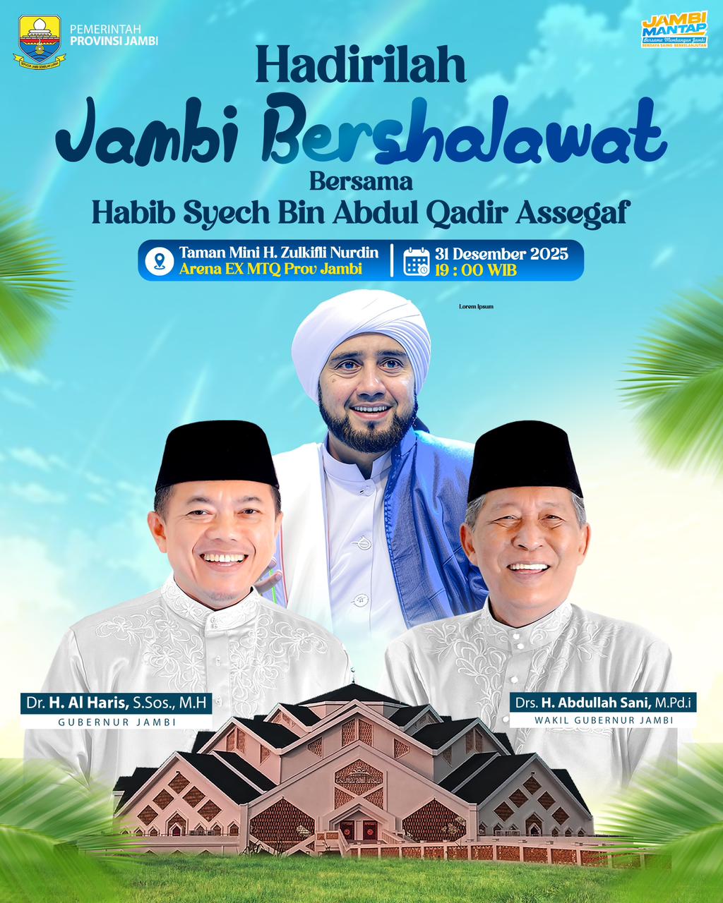 Jambi – Menyongsong pergantian tahun 2025 ke 2026, Pemerintah Provinsi Jambi akan menggelar kegiatan Jambi Bershalawat di Taman Mini H. Zulkifli Nurdin, Arena Eks MTQ, pada Rabu malam (31/12/2025) nanti.